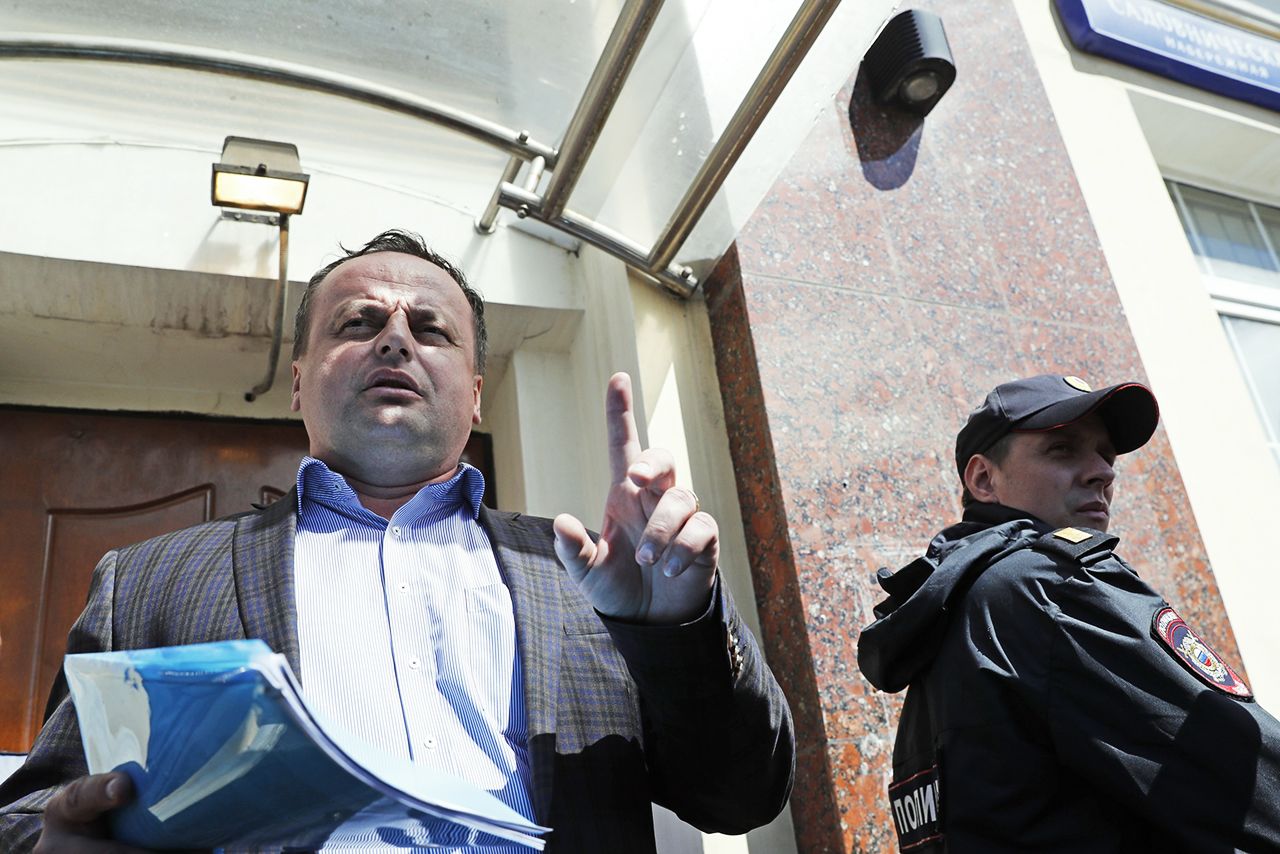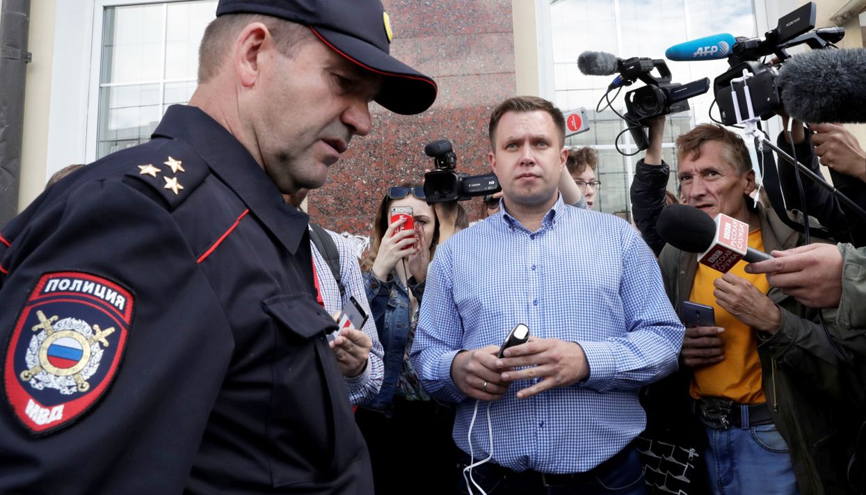 Сотрудники полиции, подогнавшие к штабу автозак, на вопросы волонтеров монотонно отвечали, что охраняют порядок. Их сопровождал человек в штатском — заместитель начальника уголовного розыска отдела МВД по району Замоскворечье, майор полиции Евгений Тихомиров. С требованием объяснить, что происходит, к нему подошел Николай Ляскин.