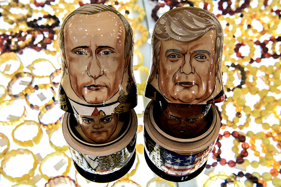 Матрешки в виде Владимира Путина и Дональда Трампа в сувенирном магазине в центре Москвы. Фото: Кирилл Кудрашев / AFP