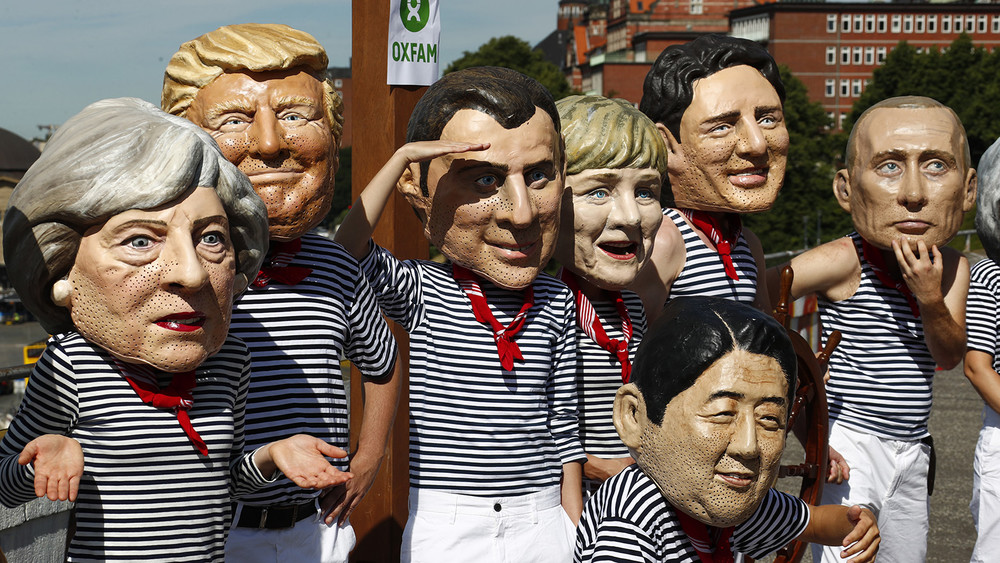 Активисты OXFAM в масках мировых лидеров во время демонстрации по случаю саммита G20. Фото: Fabrizio Bensch / Reuters 6 July 2017, 15:57 Что обсудят лидеры двух стран на гамбургской встрече? Текст Первая встреча Владимира Путина и Дональда Трампа состоится 7 июля в Гамбурге на полях саммита большой двадцатки. После того, как Трамп стал президентом США, он уже встретился с несколькими главами государств: канцлером Германии Ангелой Меркель, лидером Франции Эммануэлем Макроном, турецким президентом Реджепом Тайипом Эрдоганом, президентом Украины Петром Порошенко и председателем КНР Си Цзиньпином. Пресс-секретарь Путина Дмитрий Песков заявлял корреспонденту BBC, что диалог между двумя лидерами «жизненно необходим для всего мира в плане повышения эффективности решения критической массы конфликтов и проблем, которая растет день ото дня».