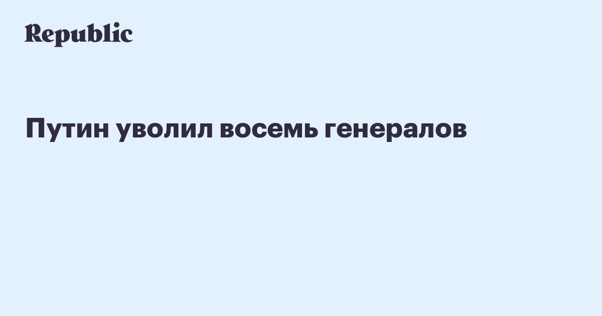 Президент России Владимир Путин уволил восемь генералов. Соответствующий указ опубликован на официальном интернет-портале правовой информации.