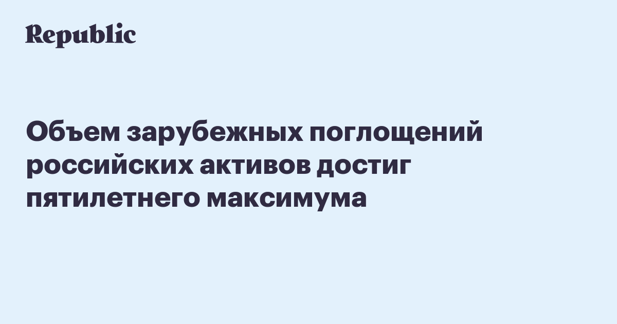 Объем зарубежных поглощений российских активов достиг пятилетнего максимума