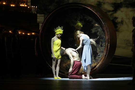 © Мариинский театр В «Ярославне» во второй раз после «Петрушки» случился стилевой коллапс: дорогой замысел при дешевизне исполнения. Из шкафа мировой поп-культуры на сцену выпала хаотическая груда карнавальных персонажей: здесь разноцветные бородатые владыки из компьютерных игр, наряженные игроками в регби воины, девицы в пайетках с лимонными нимбами и навыками сурдопереводчиц. Для китча «Ярославна» совсем не роскошна, для кэмпа недостаточно эксцентрична и недостаточно серьезна, и тут уж одно из трех — или оргия с силиконовыми стриптизершами, или поролоновая колбаса на розовой скатерти, или банальные классические па, ввернутые в партию Игоря (что по правилам игры в современный балет есть обыкновенное жульничество). Площадной театр или психологический театр (именно в традиции последнего ведет спектакль Игорь — Юрий Смекалов). Тянуть за веревочку сгоревший пупырчатый блин луны (затмение, наивность) или под занавес расставлять по сцене бутафорские свечки (прозрение, духовность).