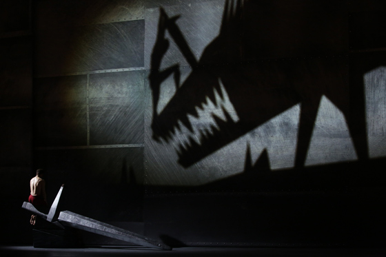 © Мариинский театр Нагляден меч — фетиш, фаллический символ, завладевший вниманием народных масс (еще один символ — герб в виде распятого скелета птеродактиля). Наглядны условные святые в костюмах цвета меркнущего солнца, камлающие над трупом убитого в усобицах. Ни с чем не спутаешь милитаристские игры, переходящие в языческий обряд. Наглядны и сцены с половцами: пир превращается в оргию каннибалов с отрубленными вражескими головами на дорогих блюдах — и Игорю, потерявшему дружину, становится понятно, что между тренировкой и выступлением есть все-таки разница.