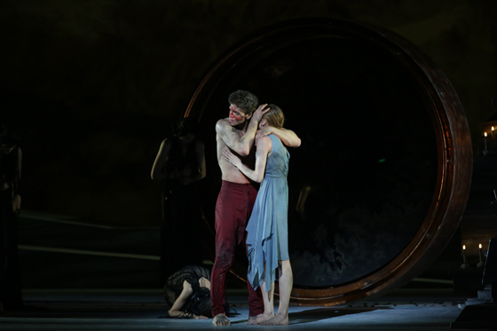 «Наглядность» — вообще ключевое слово для понимания авторского замысла, даже если создатели мариинской «Ярославны» и подразумевали (отнюдь не всегда считываемый) переносный смысл. Постановщику так важно донести антивоенную идею, так необходимо докричаться до публики, что придуманный парад культурных кодов выходит наивно-лозунговым, почти подростковым в своей запальчивости. Но при этом — в духе площадного, гротескного театра, уравнивающего в правах времена и эпохи: дружину Игоря в походе сопровождает подводная лодка в степях, а само наползающее гигантским черным кругом затмение выглядит расхожей цитатой из кинофантастики.