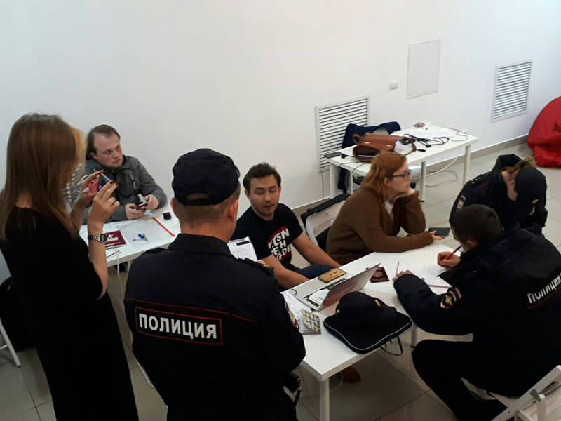 Руководитель штаба Семен Кочкин заявил, что одного из сотрудников увезли в полицию, так как он якобы находится в розыске. По его словам, полицейские также забрали половину тиража агитационных материалов.