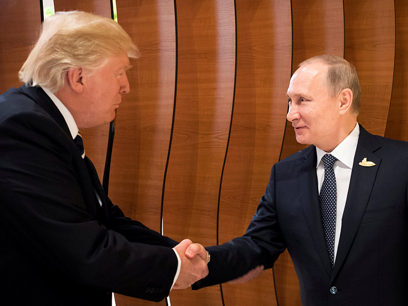 Запись, на которой видно, как Путин и Трамп жмут друг другу руки, выложило на своей странице в Facebook Федеральное правительство Германии. Момент запечатлен на 33-й секунде ролика.