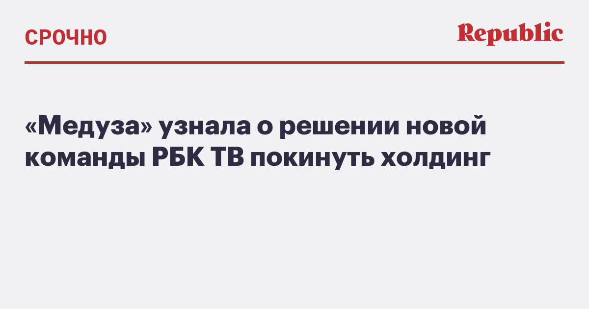 «Медуза» узнала о решении новой команды РБК ТВ покинуть холдинг