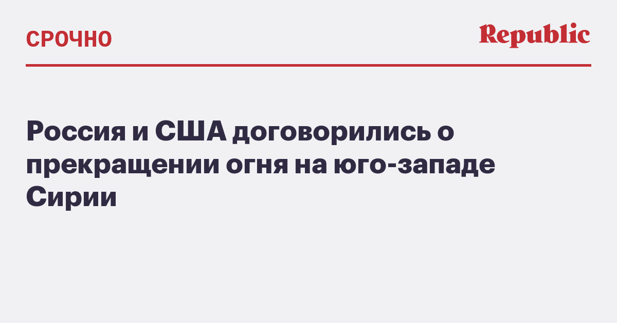 Россия и США договорились о прекращении огня на юго-западе Сирии. Об этом сообщили источники Associated Press и Reuters. По их данным, перемирие начнет действовать с 9 июля.