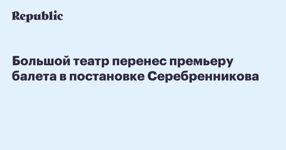 Большой театр перенес премьеру балета в постановке Серебренникова