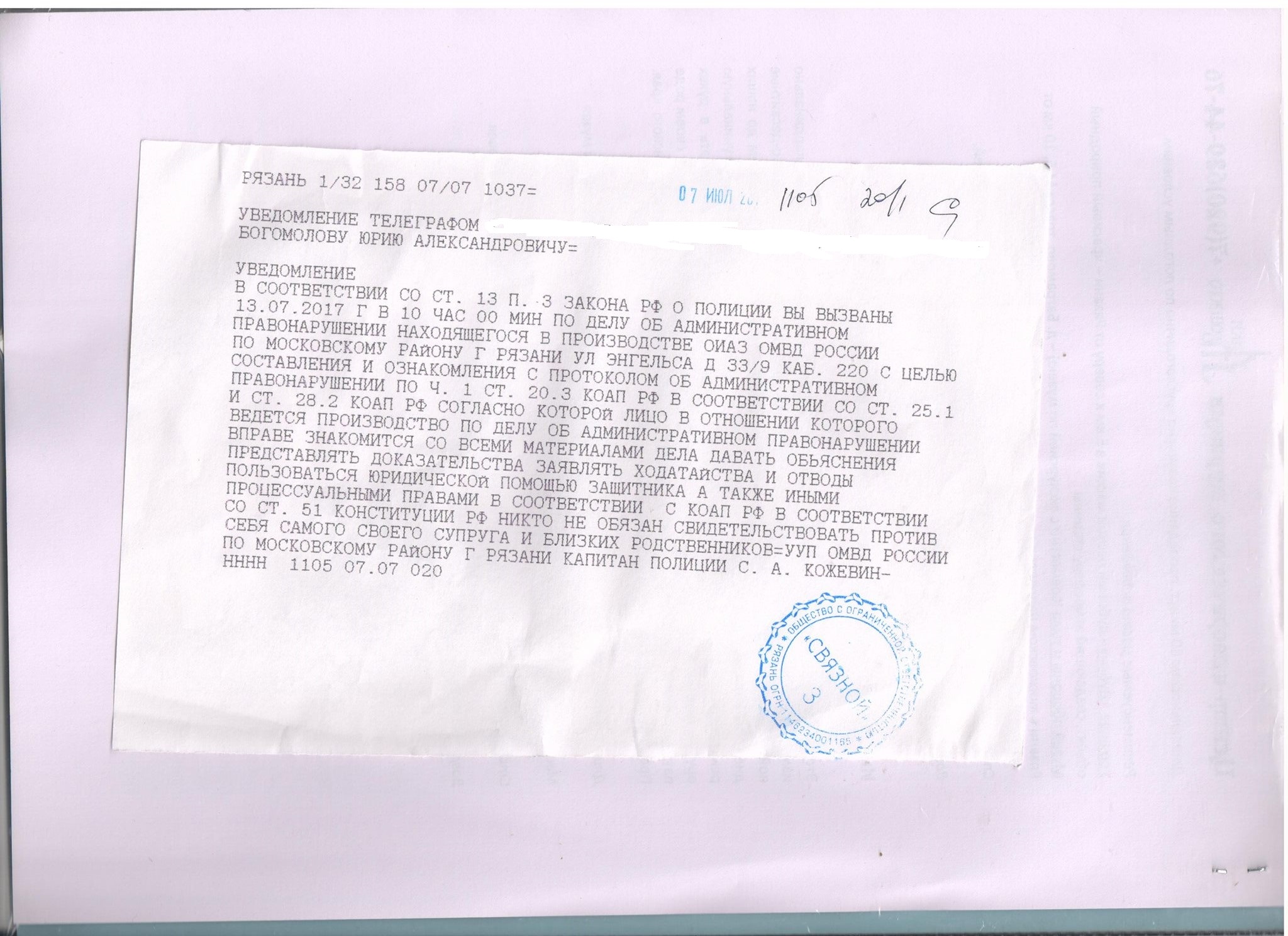 Ну, вот. как говорится, "предчувствия его не обманули". Два мордастых мужика (а какие же они там еще могут быть), которые позавчера в мое отсутствие наведывались ко мне домой действительно оказались из органов. Позднее я все-таки получил телеграмму с вызовом в околоток. Как говаривал Иван Васильевич Грозный: "Дело шьют". Если я правильно понял, то что-то связанное с "пропагандой либо публичным демонстрированием какой-то символики". Понятия не имею, о чем это они. Не буду даже предполагать - все постепенно выяснится само собой.