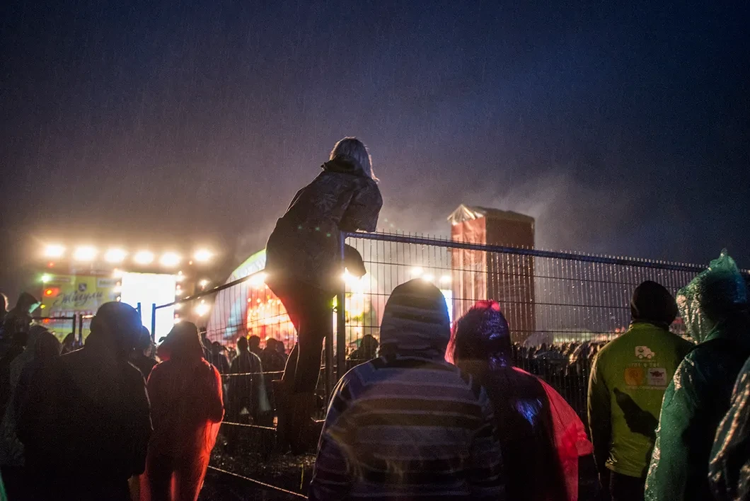Во время выступлений у главной сцены зажигаются пронесенные фанатами фаеры и дымовые шашки, по палаточным лагерям снуют гости с ящиками пронесенного алкоголя. К вечеру первого дня непрекращающийся дождь превращает территорию фестиваля в непроходимое болото.