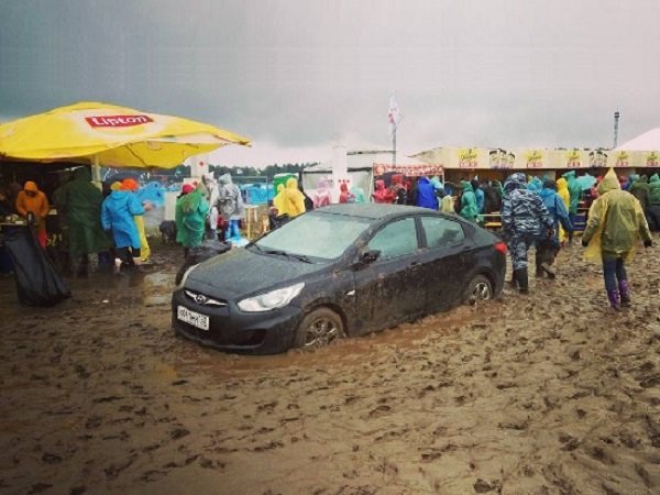 На фестивале «Нашествие» в грязи увязли 8 тысяч автомобилей