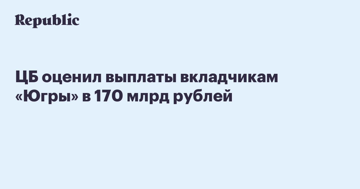 ЦБ оценил выплаты вкладчикам «Югры» в 170 млрд рублей