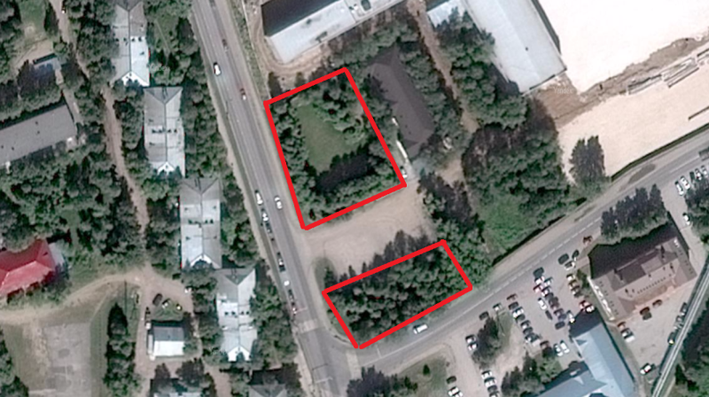 И вот пока ломают копья по поводу бора, в самой Ухте тихо сапой вырубили сквер, расположенный на Севастопольской улице. Этот сквер находился перед бывшим административным зданием бывшего механического завода. Там были десятки уже взрослых тополей . Зеленая площадь составляла судя по карте 50х40 и 55х20м, т.е. порядка 3000м2. Сегодня там осталось буквально несколько деревьев. Зачем нужно было вырубать этот участок? Неужели под очередную стоянку для ТРК «Ярмарка», где сейчас и так переизбыток стояночных мест.