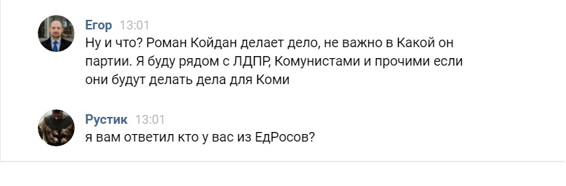 Да, в предоставленной переписке, речь у нас шла о Романе Койдане, члене партии Единая Россия. Однако Роман неоднократно говорил о не политичности его дела против госсовета. Однако Егор натягивает это на политику и усердно выставляет Койдана как борца за свержения лигитимной власти.