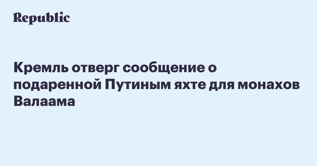 Кремль отверг сообщение о подаренной Путиным яхте для монахов Валаама