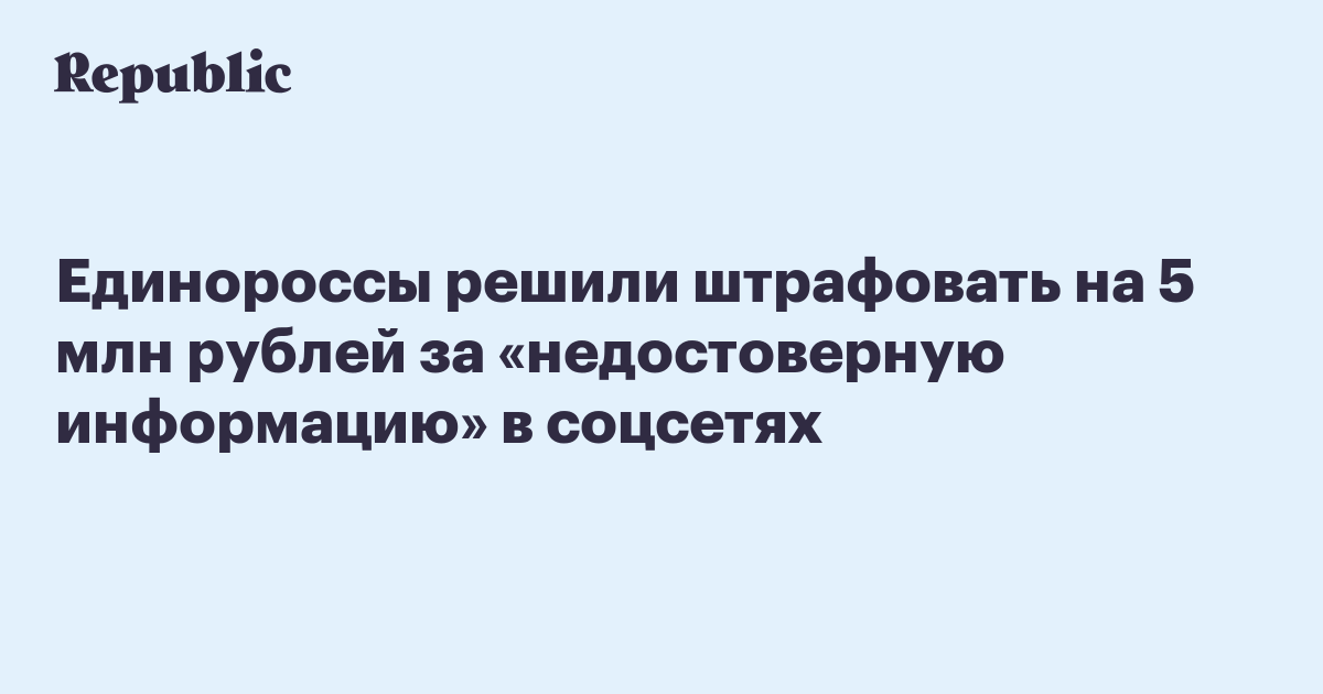 Единороссы решили штрафовать на 5 млн рублей за «недостоверную информацию» в соцсетях