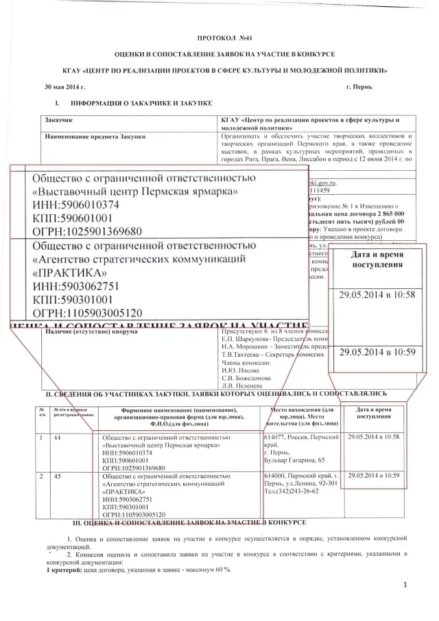 Этот пример не единичный. В 2014 году Центр по реализации проектов в сфере культуры и молодежной политики Перми проводил конкурс на организацию выставок в Риге, Вене, Праге, Лиссабоне. Заявки на конкурс в один день с разницей в одну минуту подали те же две компании брата сенатора Климова. А выиграло снова агентство «Практика».