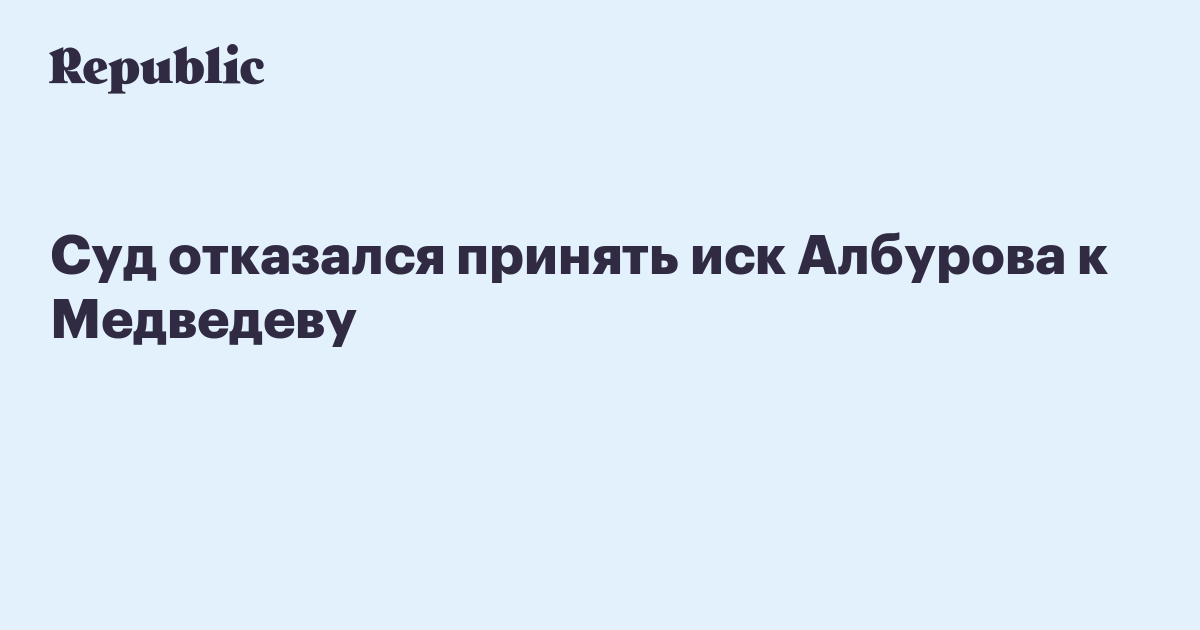 «Учитывая структуру высшего исполнительного органа государственной власти, полномочия председателя правительства РФ, а также характер и содержание административного искового заявления Албурова Георгия Валентиновича, условия для принятия его к производству суда в порядке административного судопроизводства отсутствуют», – говорится в пояснении к отказу в иске, которое есть у РБК.