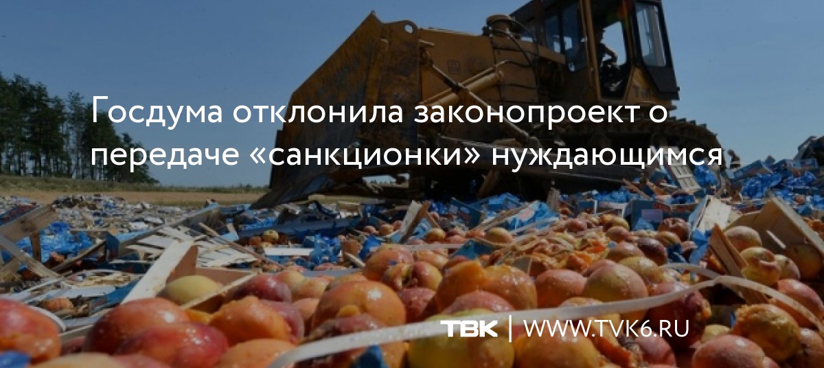 «Настоящим законопроектом устанавливается положение, согласно которому санкционная продовольственная продукция надлежащего качества будет подлежать безвозмездной передаче на социально значимые нужды», – сказано в пояснительной записке к законопроекту.