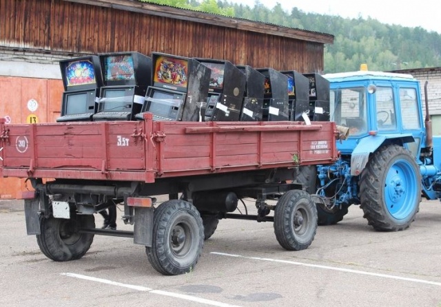 В Красноярском крае бульдозером раздавили игровые автоматы