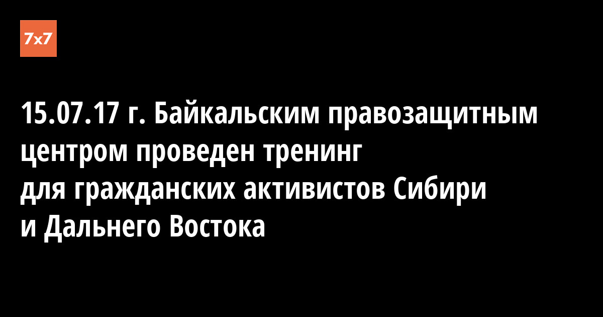 15.07.17 г. Байкальским правозащитным центром проведен тренинг для гражданских активистов Сибири и Дальнего Востока