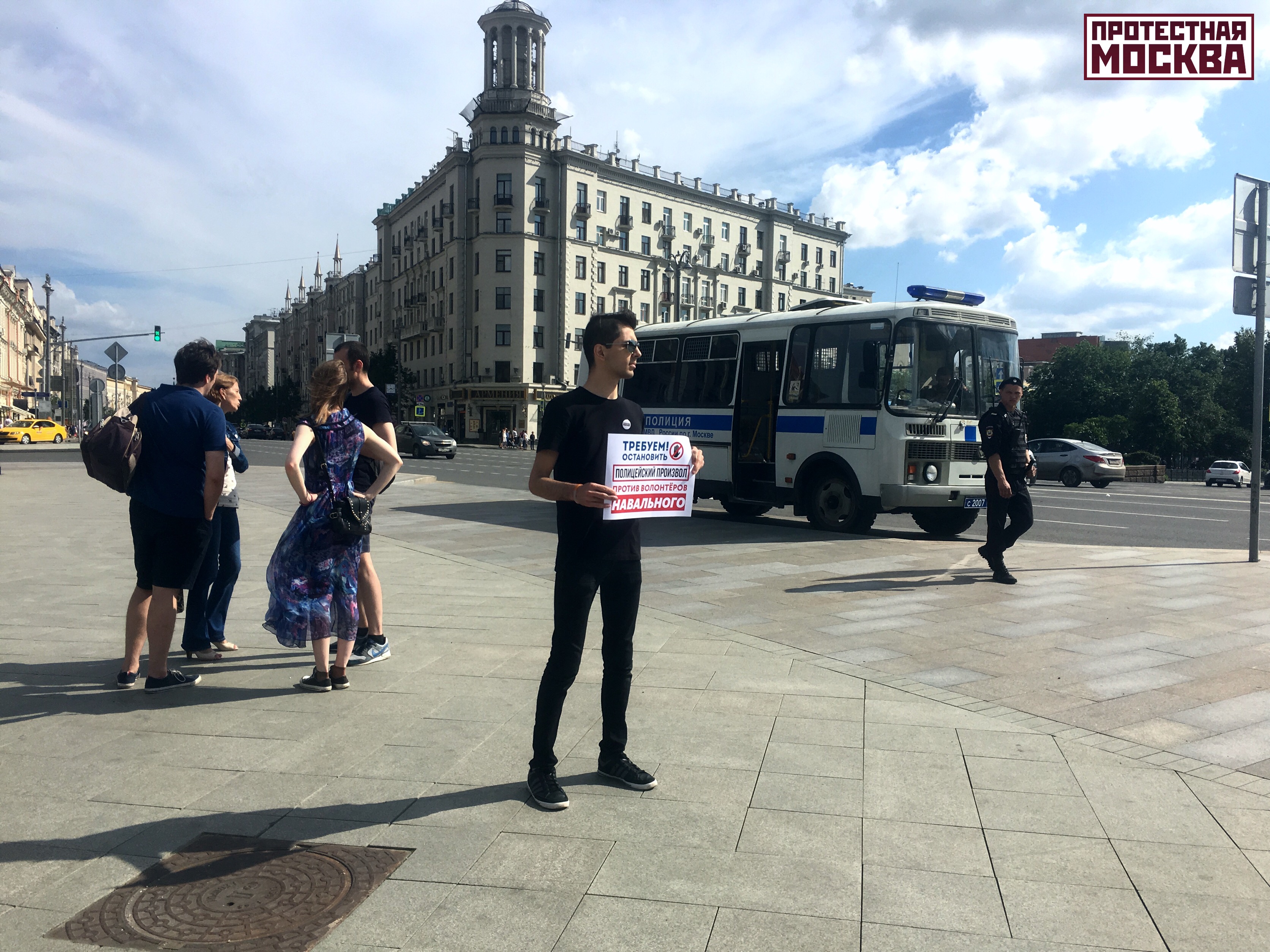 Cотрудники московской полиции задержали активистов «Протестной Москвы» Романа и Даниэля во время одиночного пикета против давления на волонтеров, участвующих в президентской кампании Алексея Навального, говорится в сообщении в Telegram-канале «Протестная Москва».