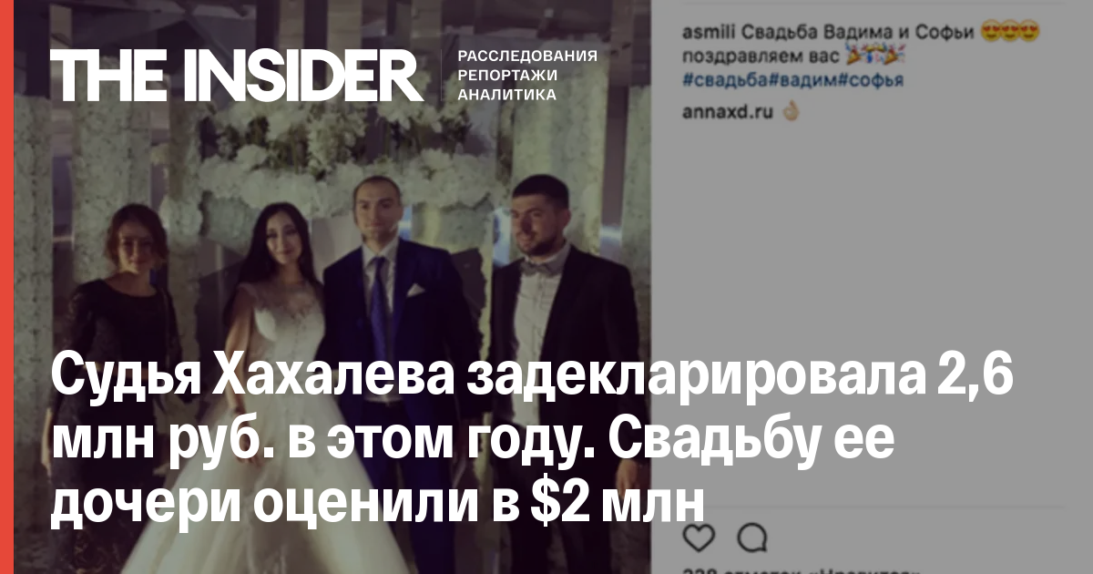 Судья Хахалева задекларировала 2,6 млн руб. в этом году. Свадьбу ее дочери оценили в $2 млн