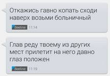 Неизвестный рекомендует Сагдиеву "отказаться гавно копать". В противном случае, угрожает он, главреду "Ведомостей" Илье Булавинову "из других мест прилетит", а с самим журналистом "обойдутся примитивней". У Сагдиева, говорится в сообщениях, "может вообще пропасть возможность заниматься трудовой деятельностью". Неизвестный не исключает, что журналист может на своей машине "в кювет слететь".