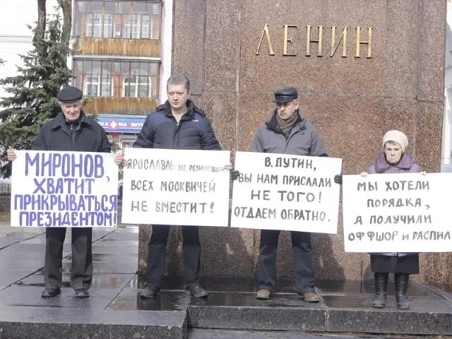 Недовольство новыми порядками пока глухое, но во время приезда в Ярославль Владимира Путина коммунисты вышли на Советскую площадь (у областной администрации) с пикетом против Дмитрия Миронова. «В. Путин, вы нам прислали не того! Отдаем обратно», — откровенно гласил один из плакатов. По области ходят слухи, что Миронов, привыкший к непубличной работе, сам тяготится своим постом и ожидает дальнейшего карьерного роста после выборов президента. А его место может занять Дмитрий Степаненко.