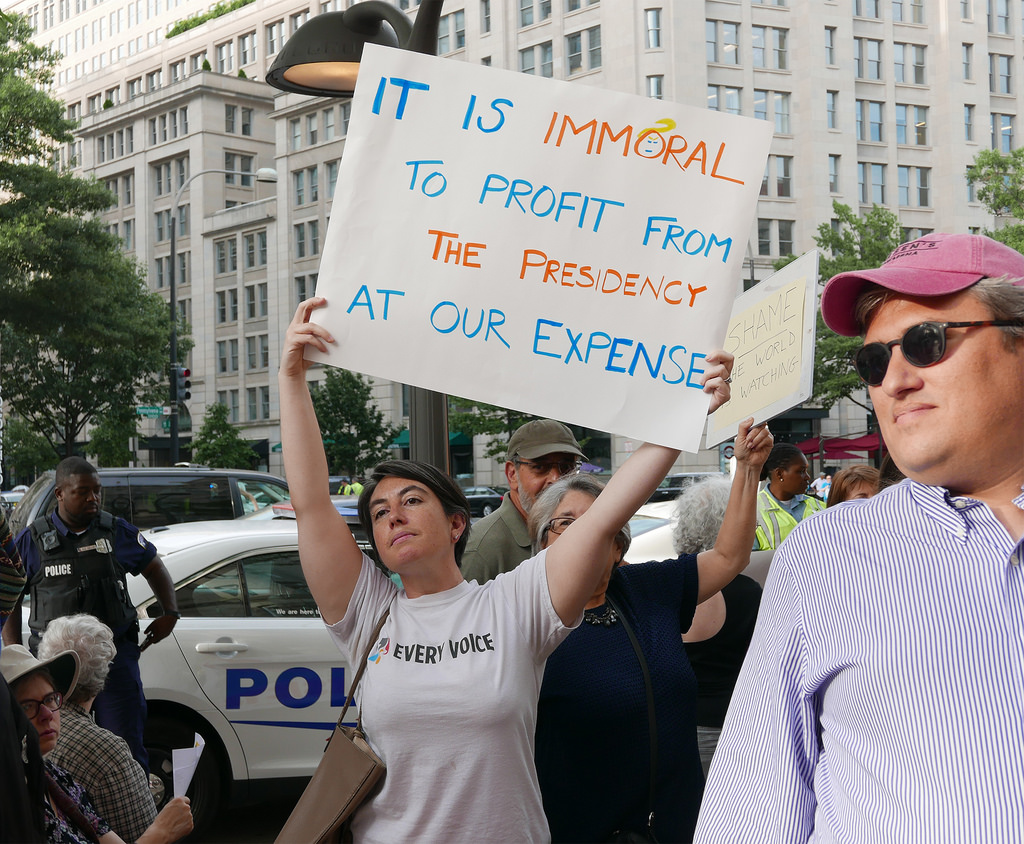 Митинг протеста в Вашингтоне Susan Melkisethian В мае свой рейтинг по итогам изучения общественного мнения составили агентство Reuters и социологической службы Ipsos. Тогда деятельность Трампа приходилась по душе 39% респондентов, против него и его работы на посту президента высказывались 55% человек, принявших участие в опросе. Данные были опубликованы на сайте социологической службы 20 мая. Примечательно, что опрос был проведен после того, как в СМИ появилась информация о переговорах Дональда Трампа с главой МИД РФ Сергеем Лавровым и послом России в США Сергеем Кисляком, которым лидер США якобы предлагал «слить» секретную информацию об ИГИЛ (деятельности организации запрещена в РФ). В итоге в Reuters пришли к выводу, что на рейтинг президента мог повлиять очередной виток скандала, связанного с отношениями России и США.