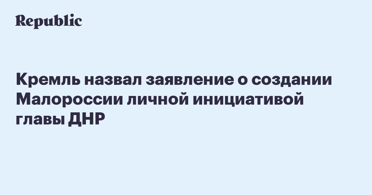 Кремль назвал заявление о создании Малороссии личной инициативой главы ДНР
