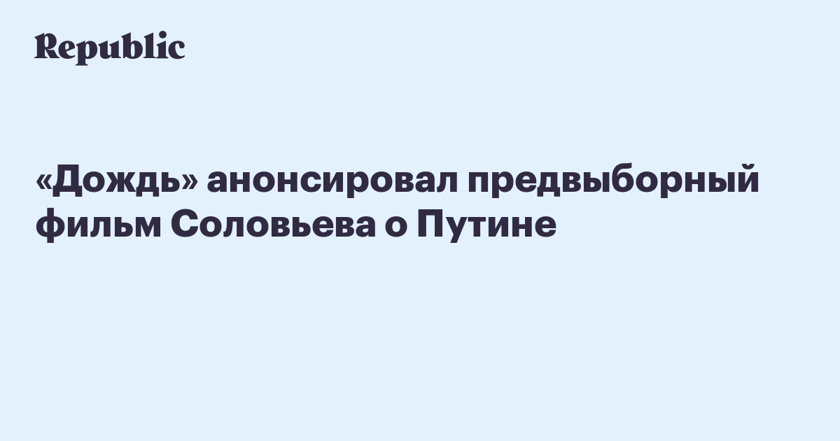 «Дождь» анонсировал предвыборный фильм Соловьева о Путине