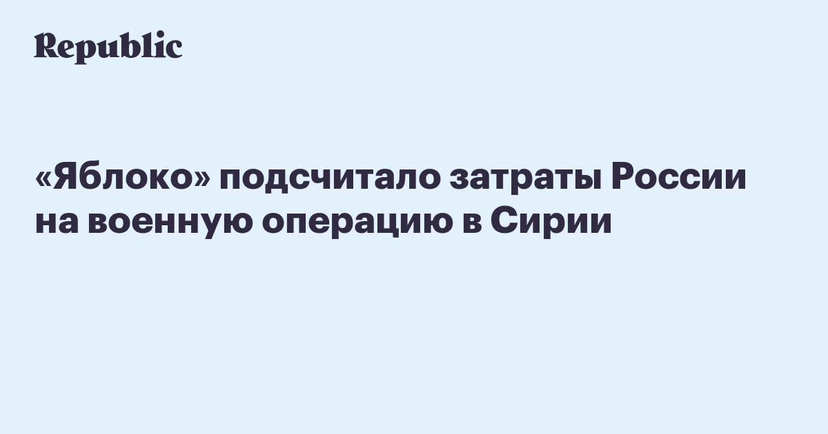 «Яблоко» подсчитало затраты России на военную операцию в Сирии