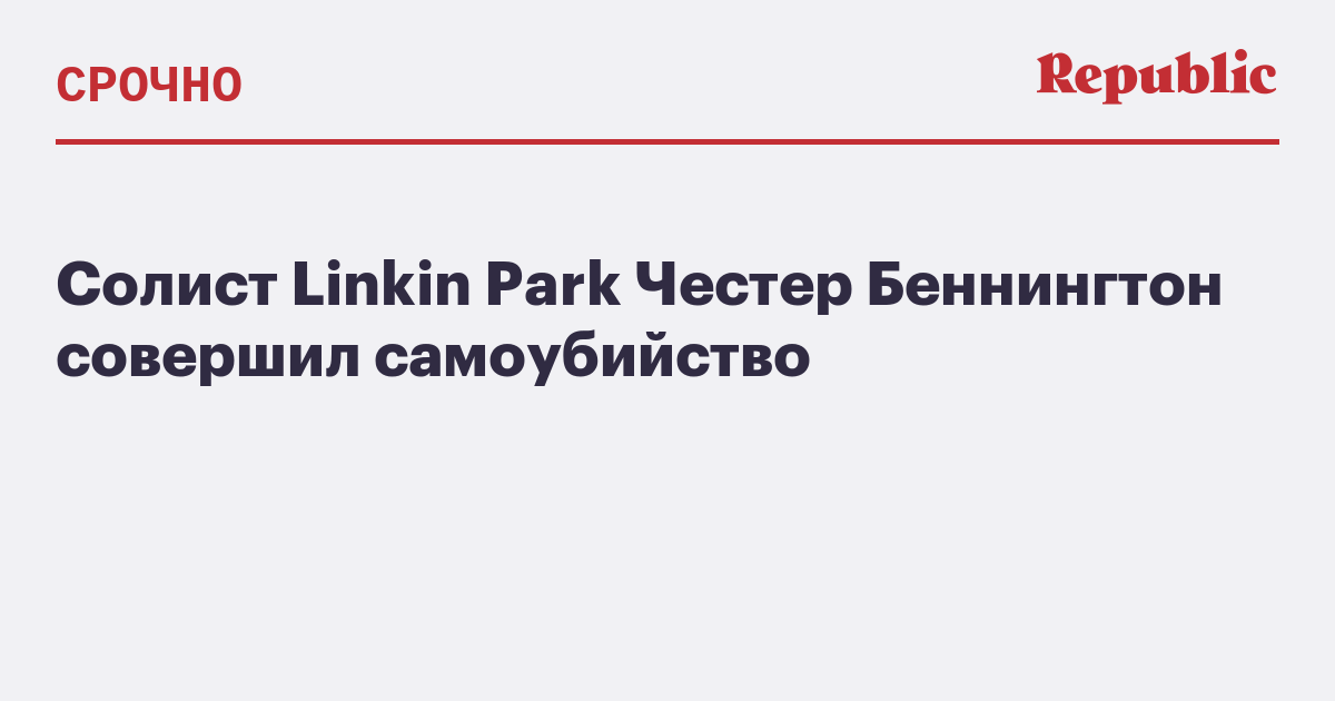Вокалист группы Linkin Park Честер Беннингтон покончил с собой. Об этом Associated Press сообщили в правоохранительных органах Лос-Анджелеса.