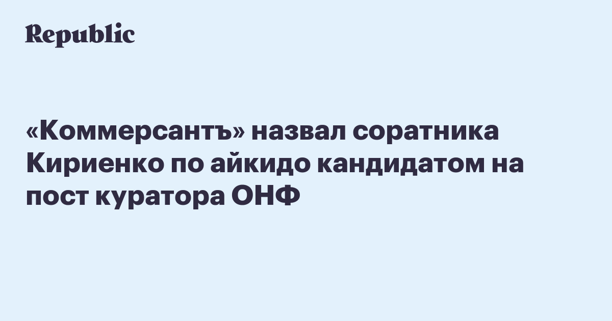 «Коммерсантъ» назвал соратника Кириенко по айкидо кандидатом на пост куратора ОНФ