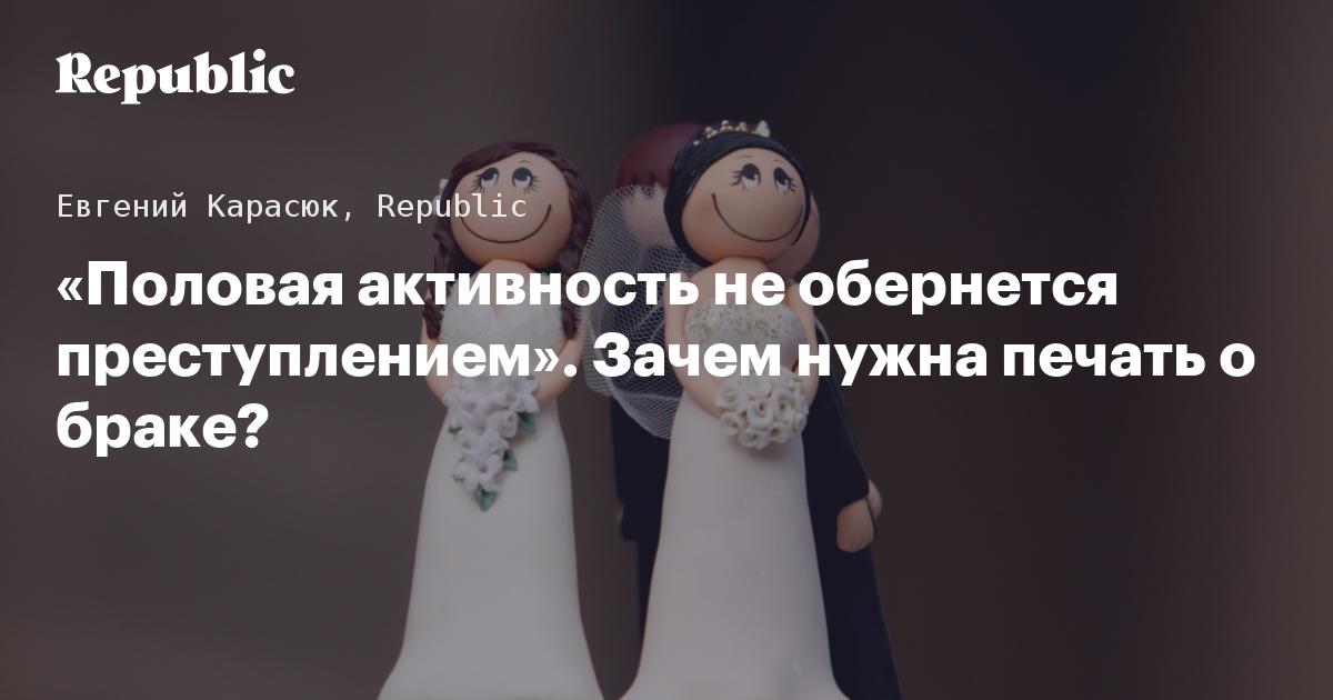 «Половая активность не обернется преступлением». Зачем нужна печать о браке?
