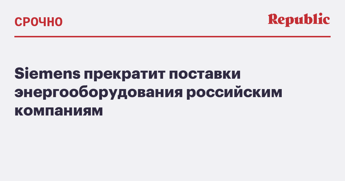 Siemens прекратит поставлять генерирующее оборудование российским компаниям, подконтрольным государству. Об этом сообщает «Прайм» со ссылкой на официальное заявление немецкого концерна.
