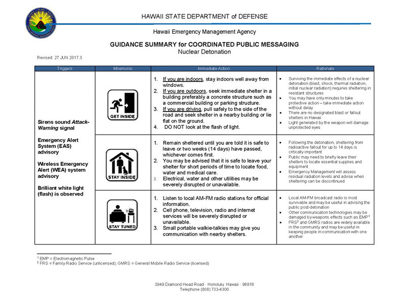 Население Гавайских островов начали готовить к возможной ядерной атаке со стороны КНДР. На сайте агентства по чрезвычайным ситуациям опубликовали обновленные инструкции, а системы оповещения начнут регулярно испытывать - впервые с конца 1980-х годов.