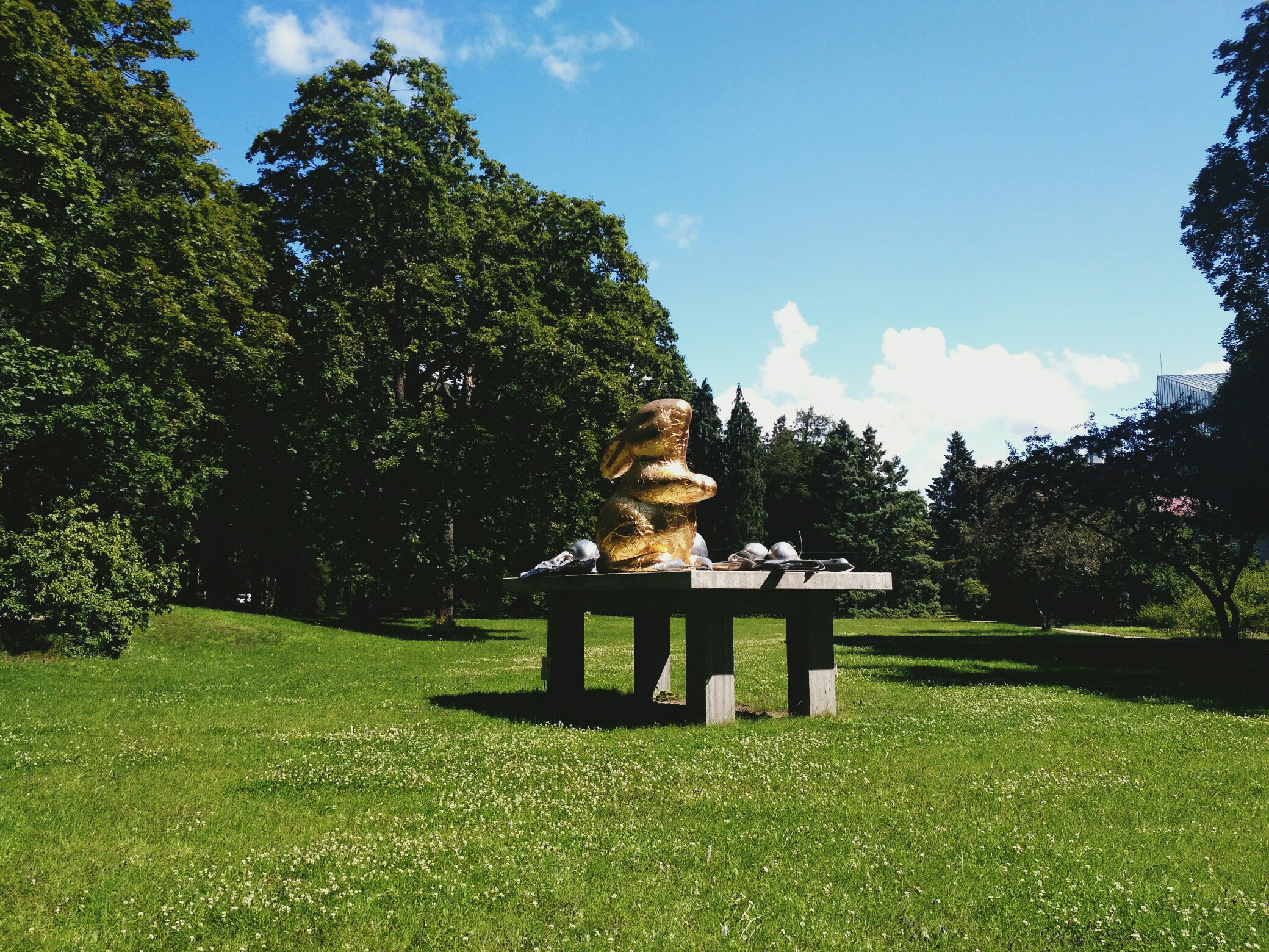 Четверг. Встреча в семейном благотворительном фонде «Бориса и Инары Тетеревых». Это самые крупные меценаты в стране. Круг работы фонда настолько обширен, что об том можно написать отдельный пост (если не два). Фонд работает по следующим направлениям: искусство и культура, проекты местных сообществ, образование, социальная помощь, забота о животных. Остановимся чуть подробнее на каждом из них. В области искусства и культуры фонд финансирует такие проекты как: реставрация Рундальского дворца и поддержка в нем научной деятельности; цикл передач Театр.zip – показ лучших спектаклей латвийских театров по телевидению; латвийская национальная премия «Ночь лицедеев» – премия для лучших театральных актеров, создание латвийского музея современного искусства, латвийский радио-театр, радио-передача «Книжный вторник» – передача о книжных новинках. Кроме того, фонд спонсирует проведение различных выставок и концертов, а также программу «Искусство в городской среде», которая направлена на установку в Риге объектов современного искусства. Например, такого, как на фото ниже: