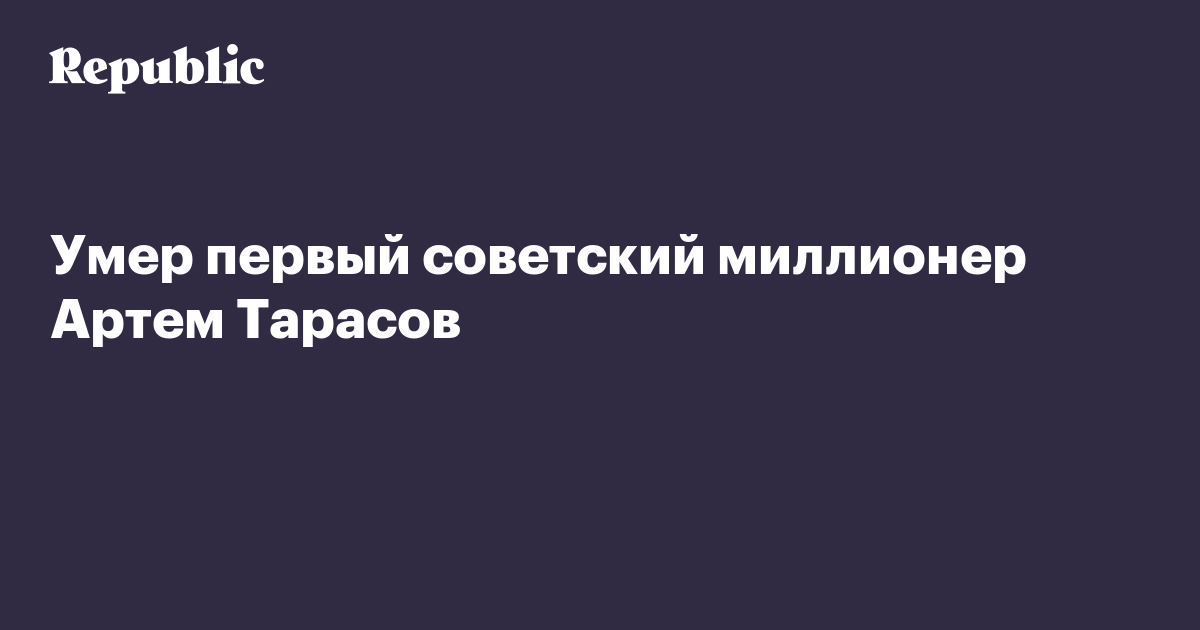 Умер бизнесмен Артем Тарасов. Об этом сообщает «Интерфакс» со ссылкой на пресс-службу партии «Яблоко».