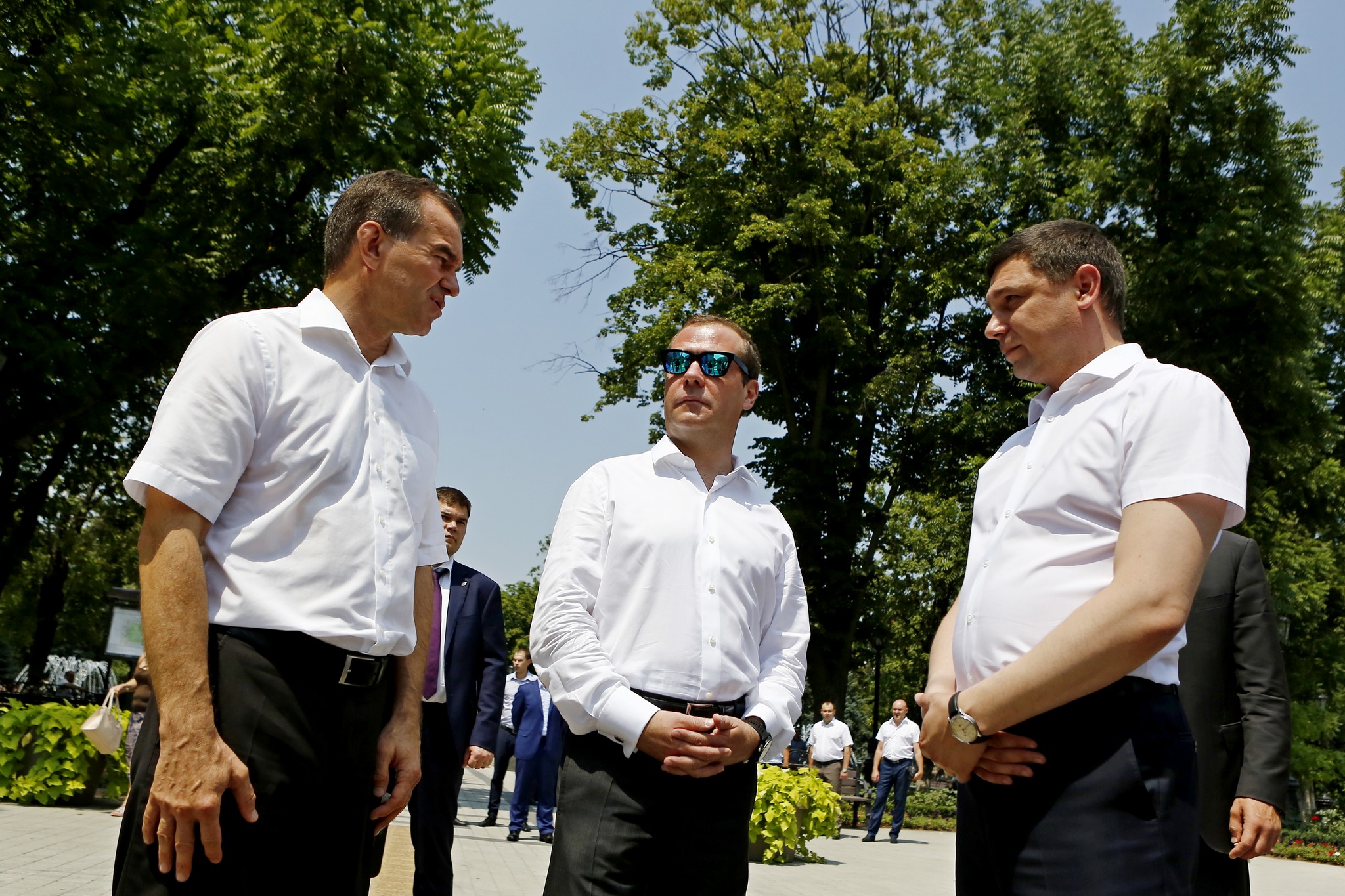Премьер-министр РФ Дмитрий Медведев прогулялся по кубанской столице и посетил краснодарский сквер «Дружба народов».
