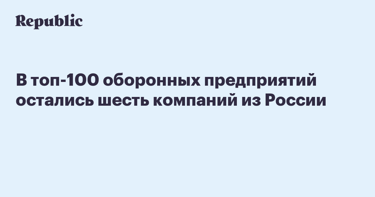 В топ-100 оборонных предприятий остались шесть компаний из России