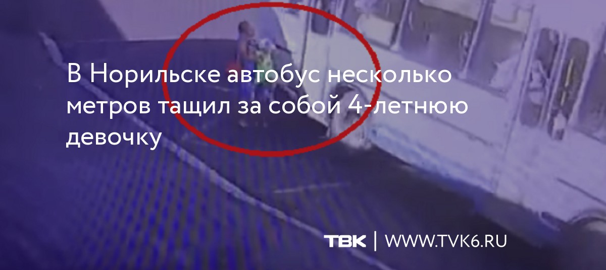 В Норильске автобус несколько метров тащил за собой 4-летнюю девочку
