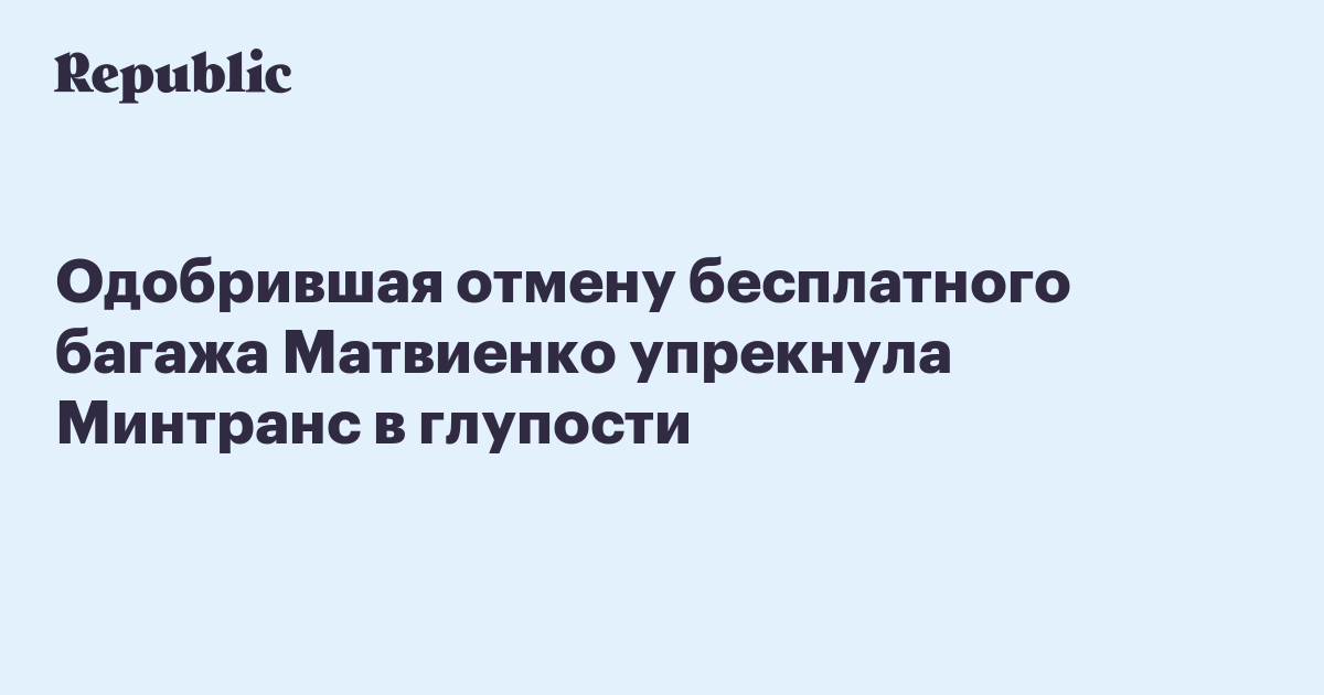 «Этот закон дает право гражданам купить дешевле билет. Человек, который летит без багажа, имеет право купить билет с другой опцией дешевле», – заявила спикер Совета Федерации Валентина Матвиенко (цитата по «Медузе»).