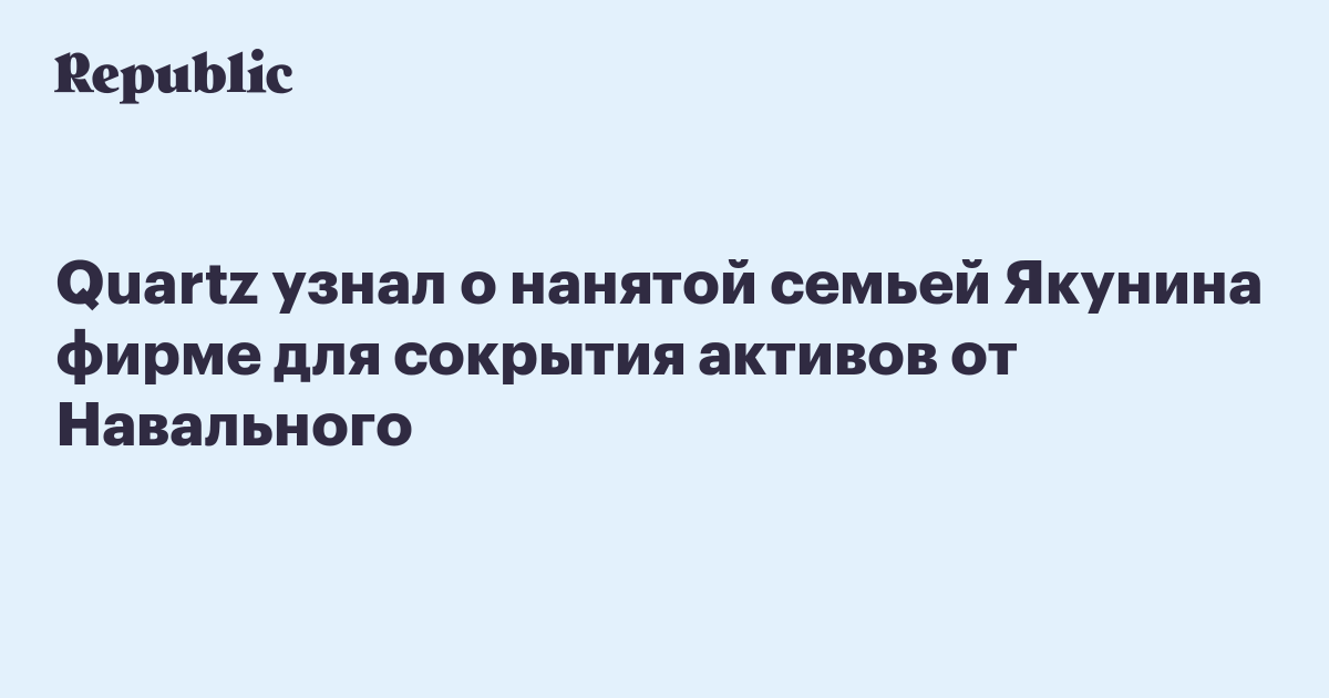 Quartz узнал о нанятой семьей Якунина фирме для сокрытия активов от Навального