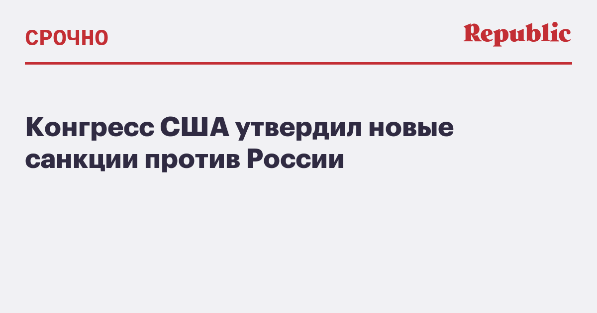 Палата представителей Конгресса США приняла новый пакет антироссийских санкций. Об этом сообщает Reuters.