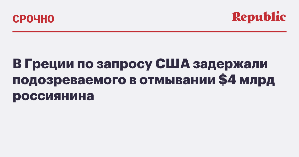 В Греции по запросу США задержали подозреваемого в отмывании $4 млрд россиянина