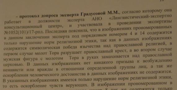 По его мнению, размещением в соцсети антирелигиозных изображений, в том числе картинки с воином в рогатом шлеме, который замахивается молотом над силуэтом горящего храма, Телегина якобы поощряла религиозную нетерпимость и дискредитировала движение Асатру. Об этом сообщает Информационно-аналитический центр «Сова».