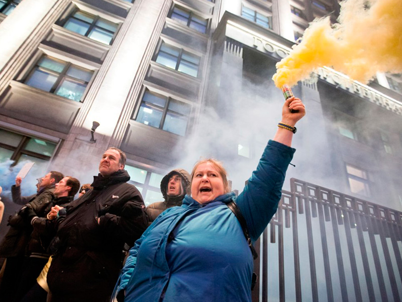 Акция у Госдумы в поддержку арестованной Н.Савченко / mskagency.ruТак что все может быть. Если же предположить, что Надеждой Савченко кто-то пытается играть, как шахматной фигурой, тут уже возможны всякие варианты. Потому что в той же же президентской кампании она может у кого-то и голоса отобрать. И первой мишенью для этого, которая приходит в голову, может быть Юлия Тимошенко – один из реальных претендентом на победу на выборах. То есть выиграть президентские выборы Надежда Савченко точно не может, а повлиять на их результат в теории может.
